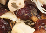 | Zutaten: Grüner Mate, Hagebutte, Brombeerblätter, Melisse, Zimt. Zubereitung: